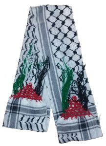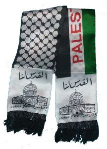 Scarf depicting the Palestine Flag and the Dome of the Rock. Has English and Arabic writing on it - Made from Nylon.
