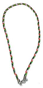 A slightly thicker string with Palestine flag colors to be worn around the neck and comes without a pendant.